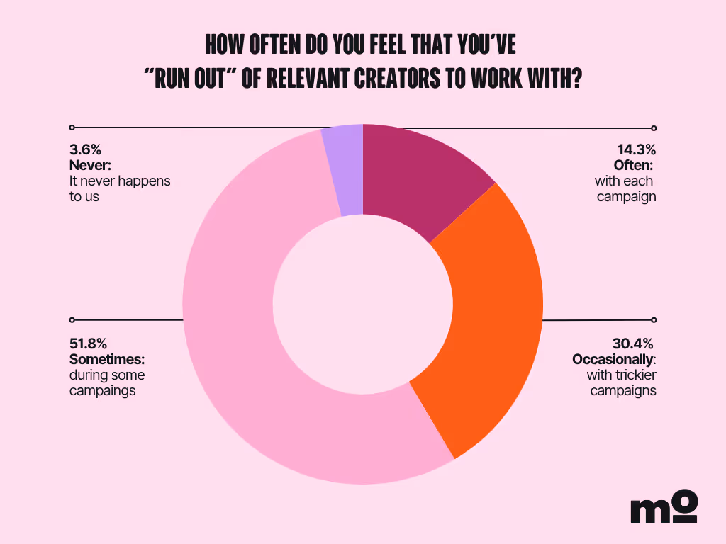 Over 51% of marketers in our survey said they often feel like they’ve run out of relevant creators to work with.
