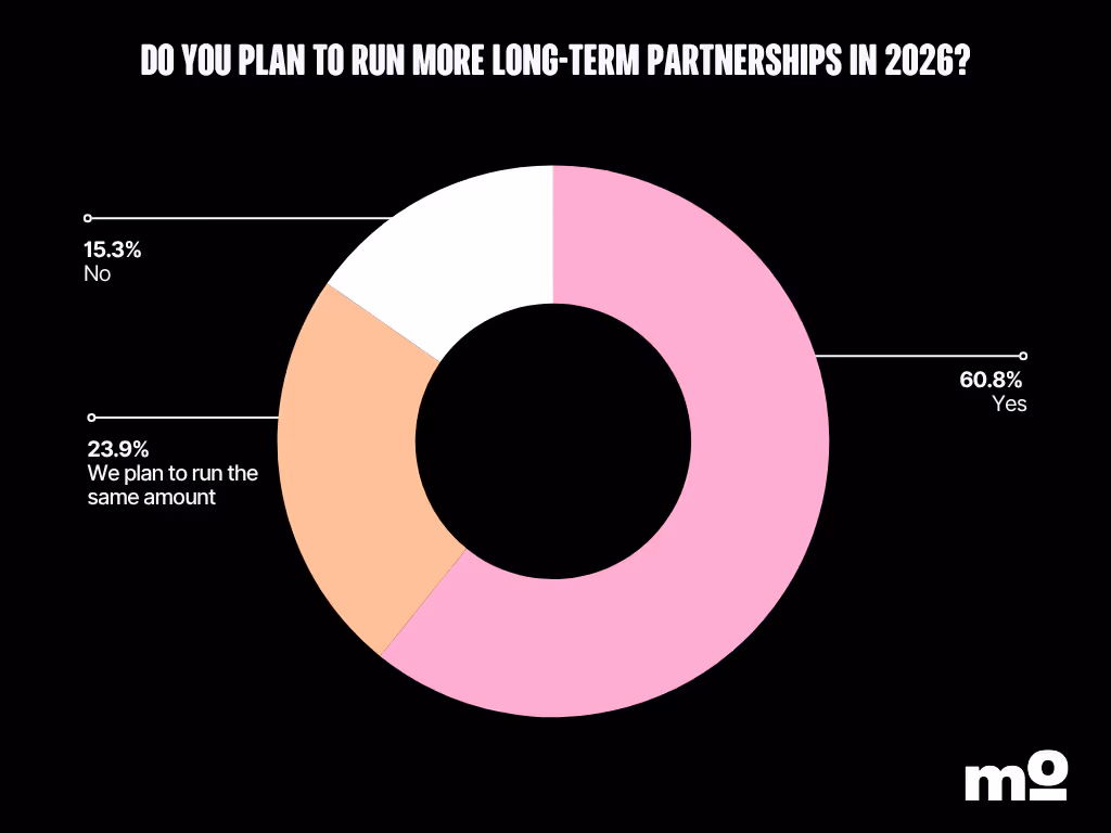 And, whatâs more, when I asked marketers the same question â will you be investing in more long-term partnerships in 2026, 27.9% fewer said that theyâd be willing to do so.