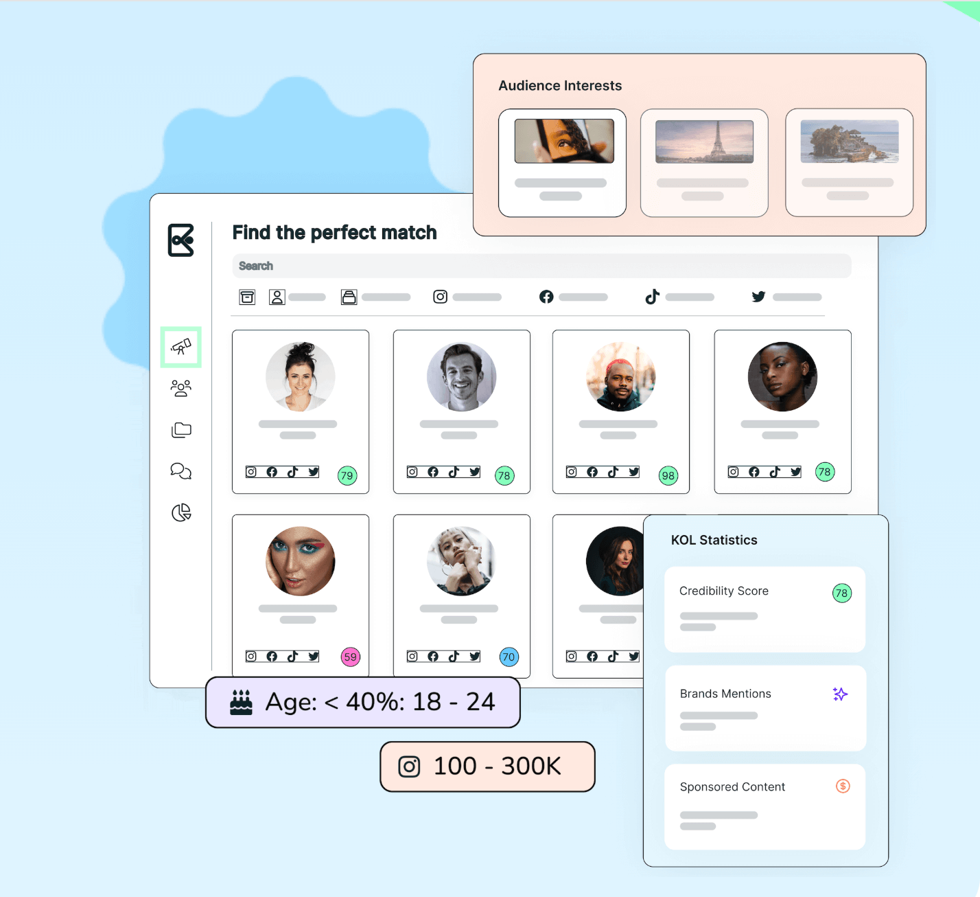 - Heepsy only has creators from Instagram, TikTok, and YouTube: Heepsy limits its database to these three social channels, while KOLSquare also has creators from Facebook, X (formerly Twitter), and Snapchat.