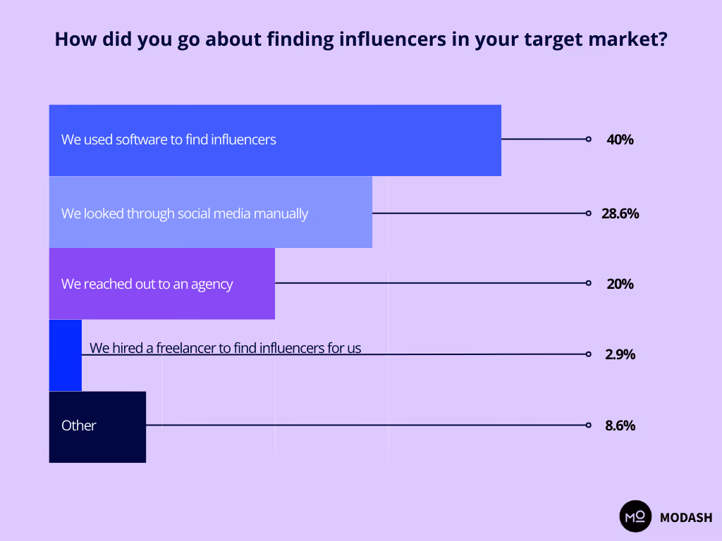 So, how do you find the right influencers in a new market? Forty percent of marketers in our survey said they use a software.