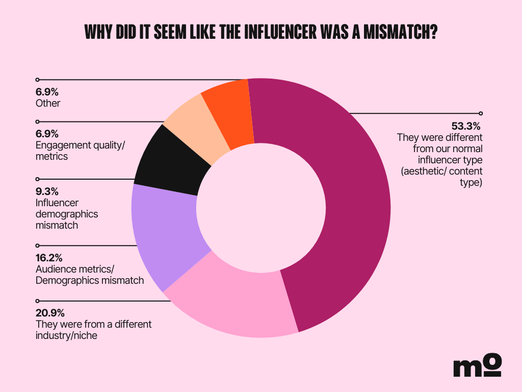 The top reason marketers feel an influencer is a mismatch is because their content style or aesthetic differs from what the brand usually goes for.
