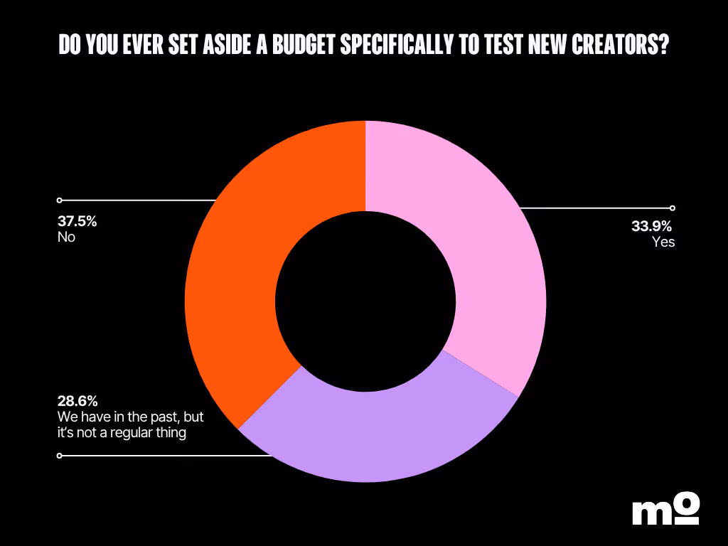 While we’re on the topic of budgets, a common mistake marketers make is not allocating resources to test storyfit creators. In our survey, a whopping 91% of marketers said they’re open to experimenting with unconventional creators. And yet, only about 34% regularly set aside part of their budget to test new creators.