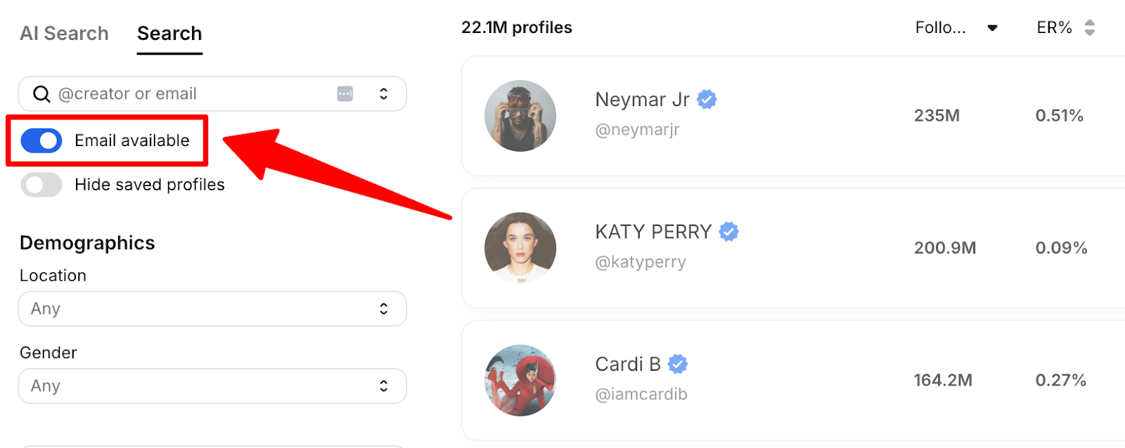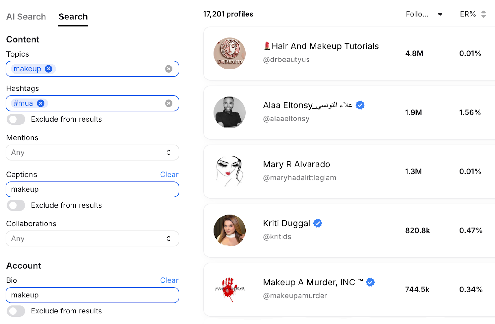 You can even narrow the results further by layering on filters like follower count, engagement rate, location, and more.
