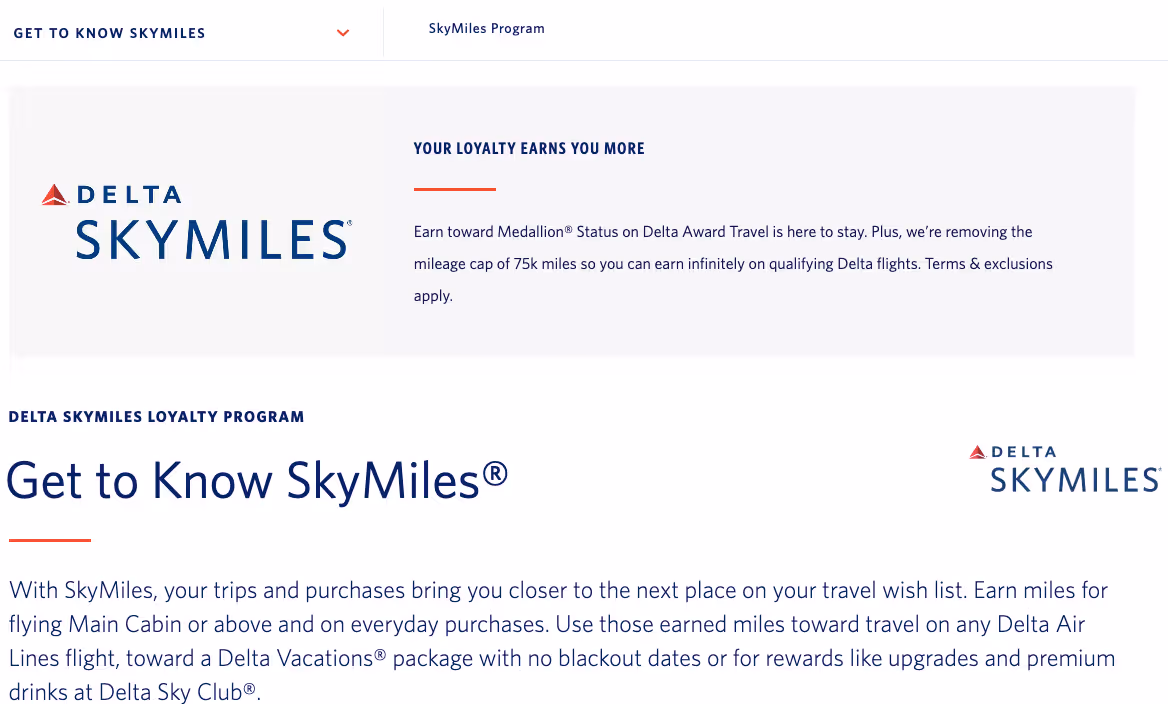 Delta, one of the oldest operating airlines in the United States, is well known for its customer loyalty program. It runs the Skymiles Program, where customers earn miles based on the amount of money they spend with the company. These miles are subsequently used to redeem future travel purchases like seat upgrades, airfares, a Delta vacation package, etc.