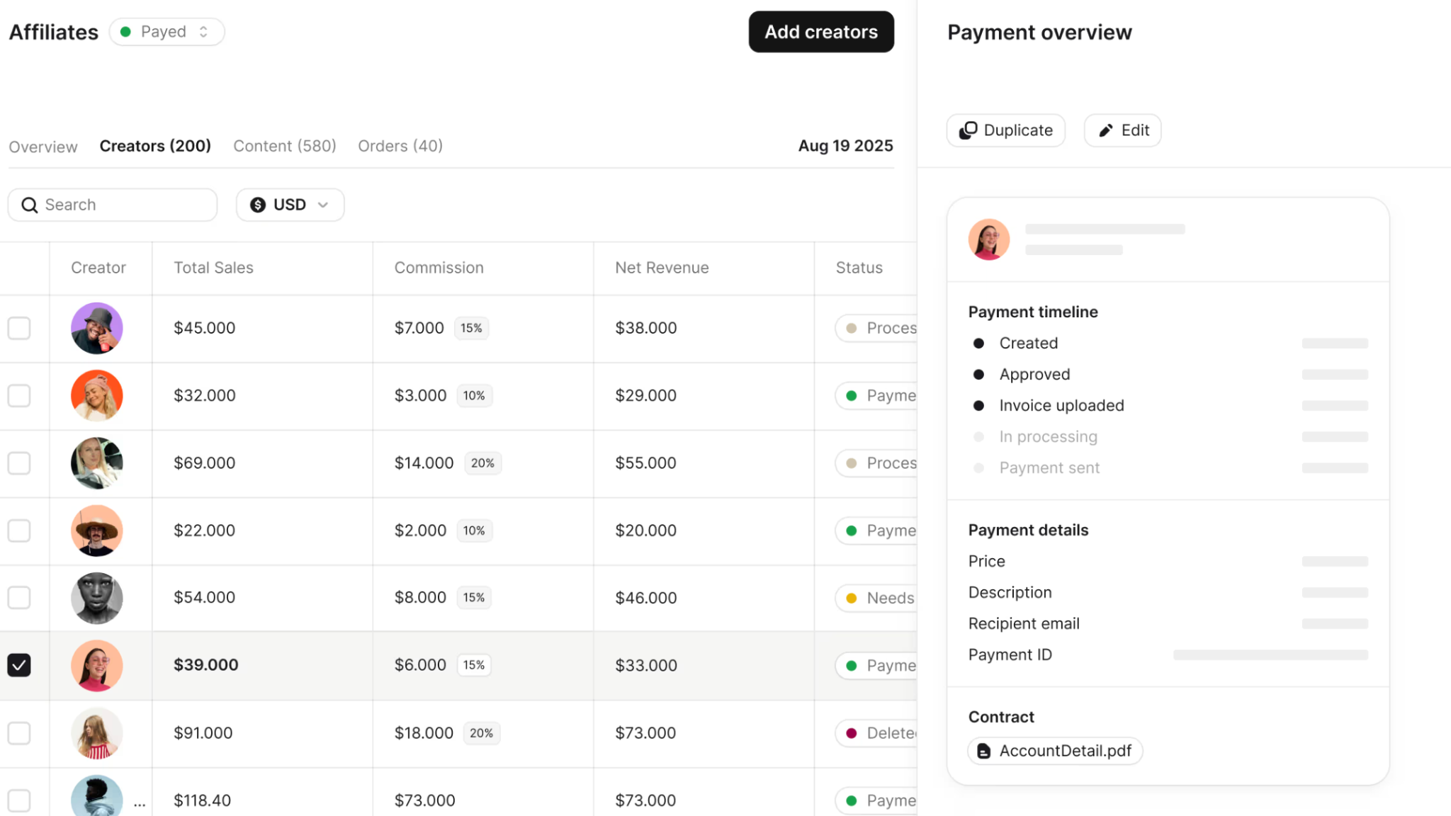 - Pay commissions on time, ideally in the creator’s local currency.