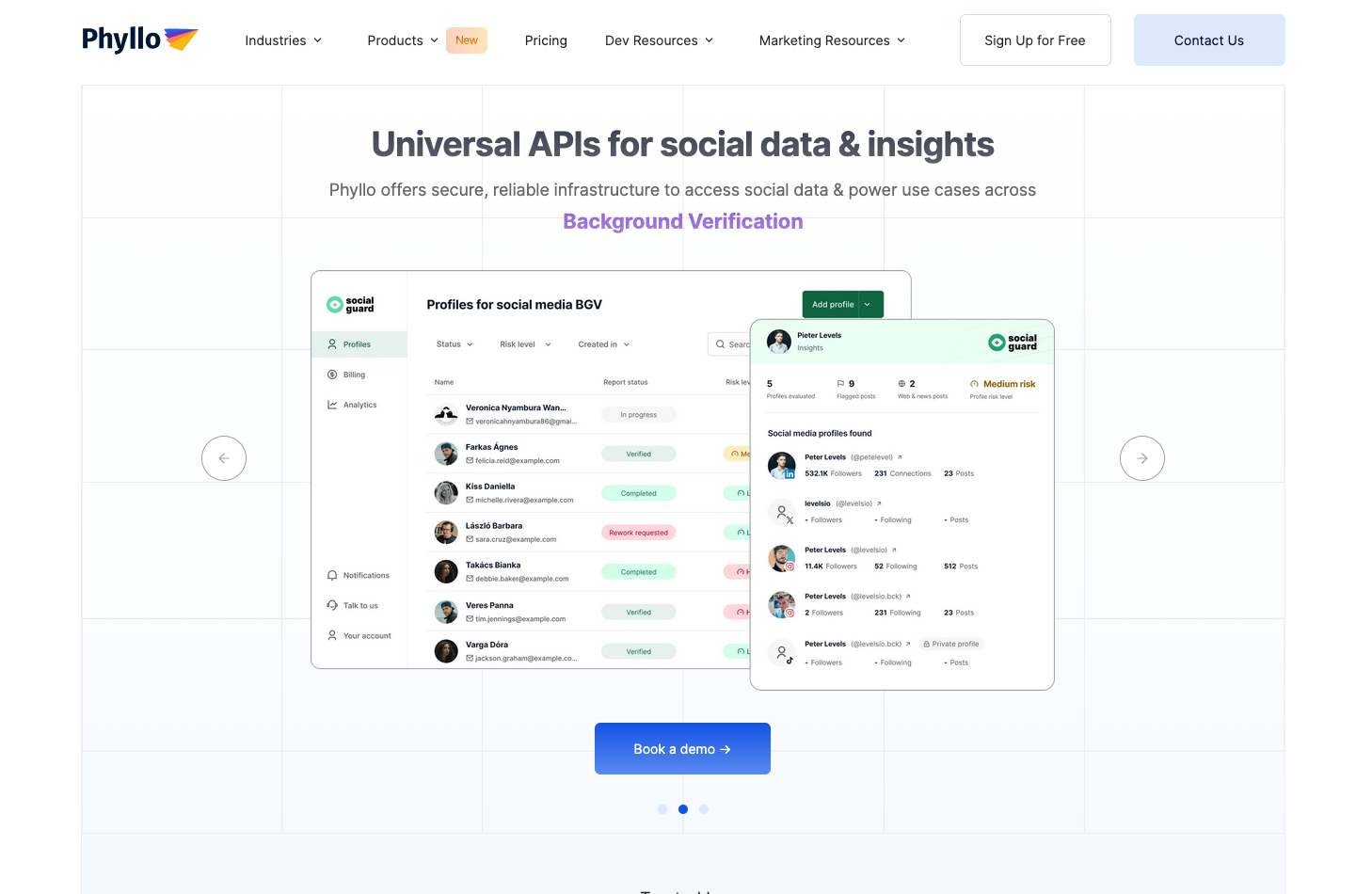 Phyllo allows apps to connect to user social accounts via a unified API. It defines itself as an API gateway that helps developers get access to user-permissioned data across source platforms such as YouTube, TikTok, Instagram, Twitter, Facebook, and more.