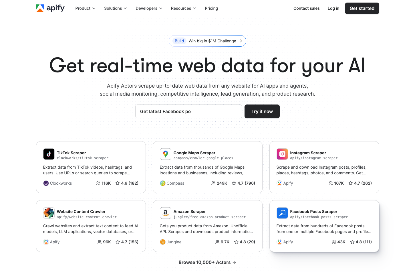 - Pros: You get a modular actor that can be forked, customized, and fixed in case something breaks. AI workflows and LLM-ready format, along with MCP servers that can browse social media anonymously.