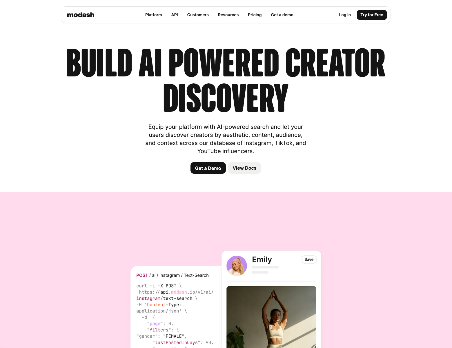 In the pipeline model, the fetching happens asynchronously. Modash continuously updates a proprietary database of over 350 million profiles across Instagram, TikTok, and YouTube. When a developer submits a query, it runs against this optimized, structured index.