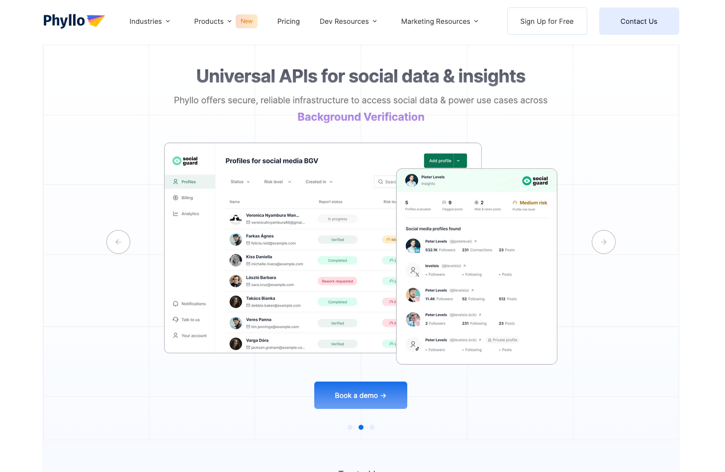 - Verified Enrichment API: Turns a social handle or email into a comprehensive profile with over 40 metrics, including verified business emails and phone numbers.