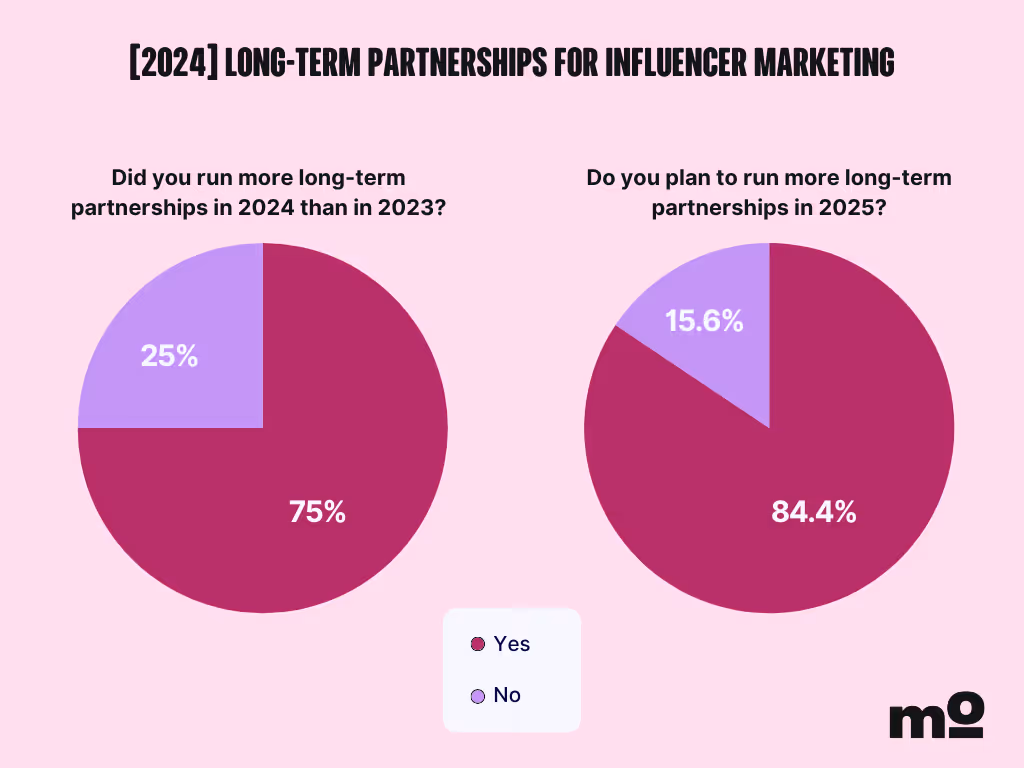 For comparison, weâll quickly revisit the results from last yearâs survey. In 2024, over 75% of marketers we surveyed had increased their long-term collabs compared to 2023, and over 84% even said they had planned to double down on them in 2025.