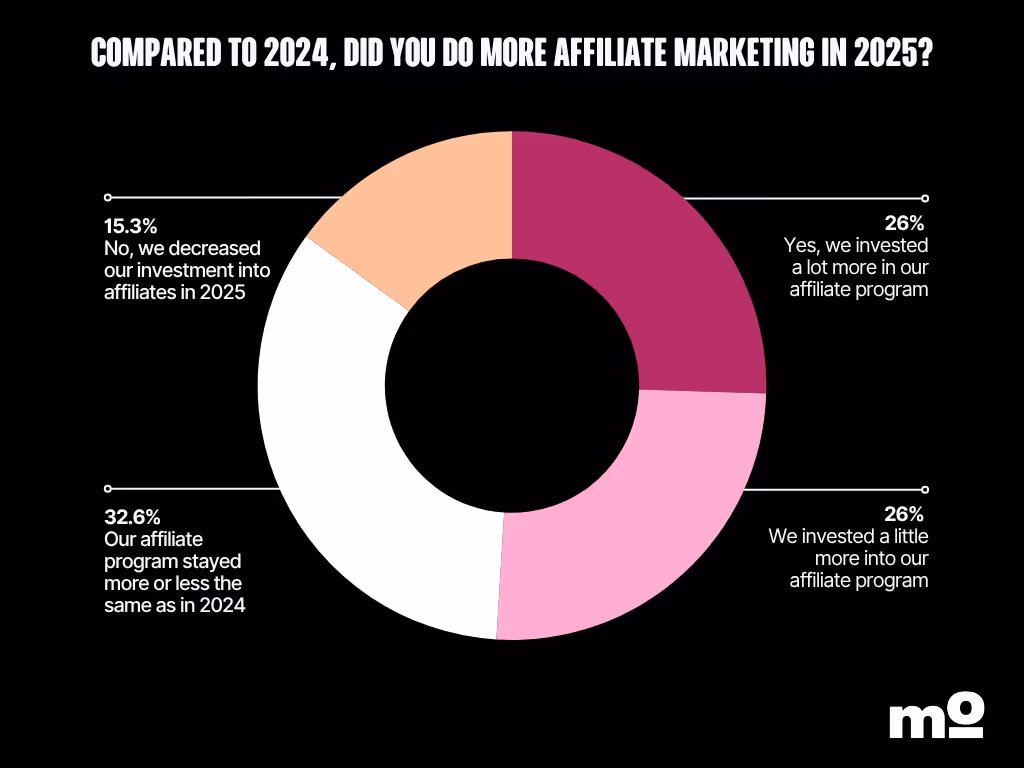 The slight decline in long-term campaigns led to a rise in affiliate programs, which are more secure and offer quicker returns. Over half of the marketers we surveyed said they invested more in their affiliate program in 2025 than they did the year before.