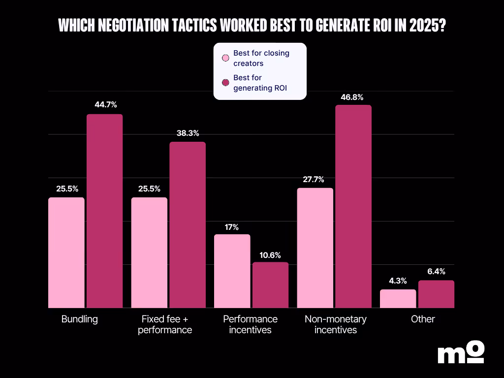 As bundling was the second biggest negotiation tactic according to our survey, itâs not going anywhere for 2026. Itâs crucial to be fair in your ask, though â if a creatorâs price is out of budget for Instagram Reels, for instance, you can ask them to include a couple of Instagram Stories, but not a new TikTok video.