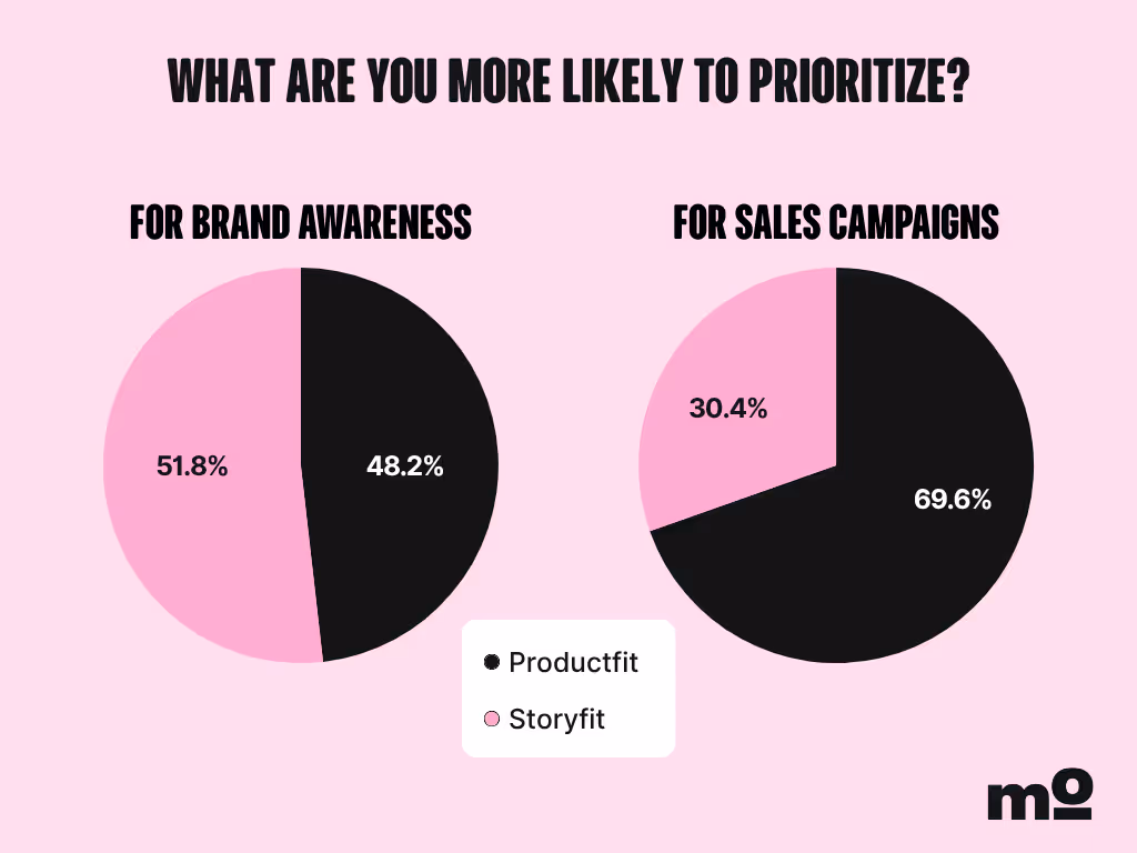 Marketers were more likely to experiment with unconventional, storyfit influencers (51.8%) when they were running brand awareness campaigns. However, for sales campaigns, most preferred to stick to product-fit influencers in their niche (69.6%).