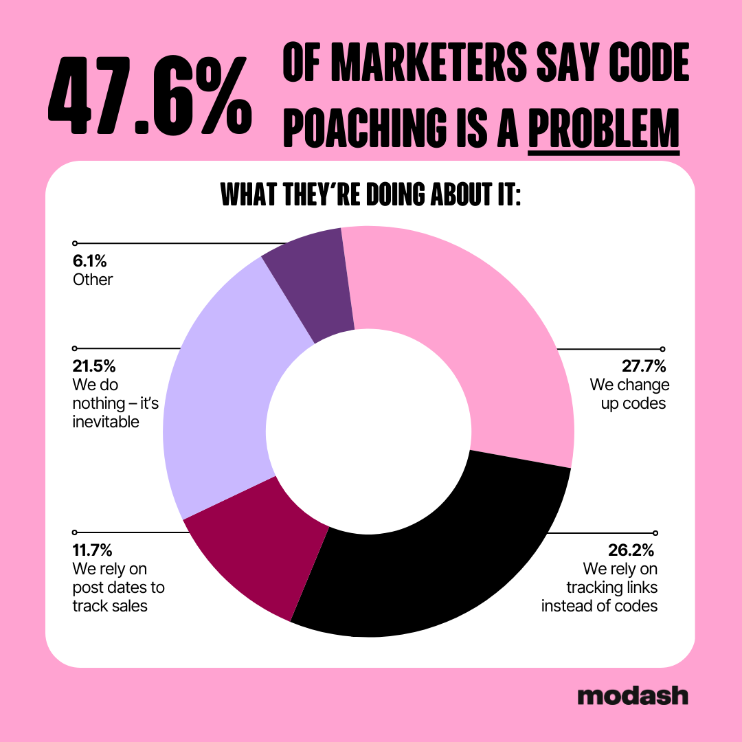 47.6% of marketers in our survey struggle with code poaching – aka when your affiliate’s discount code is leaked into a code aggregation site. Marketers are dealing with it by: