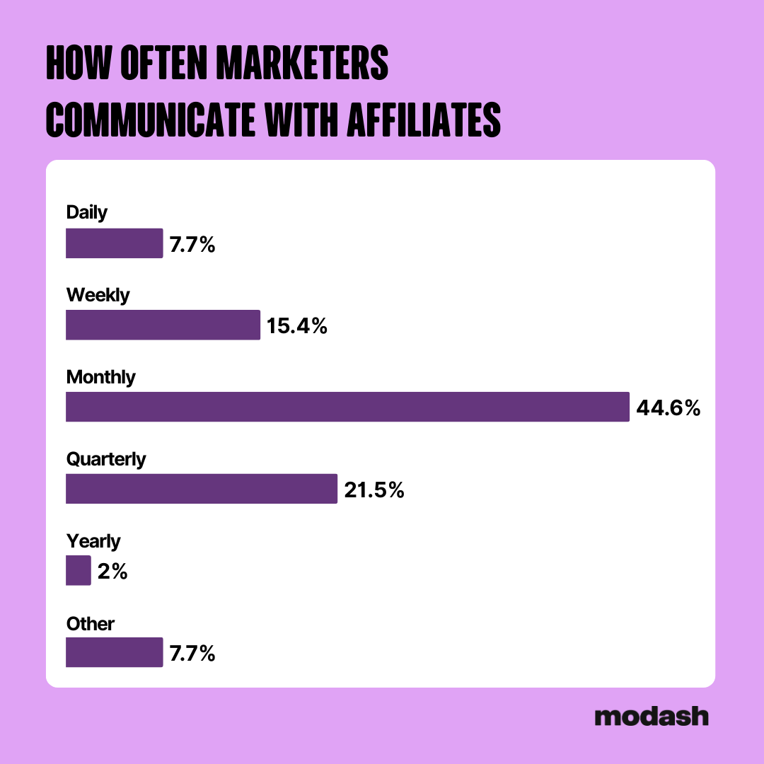 On top of this, only 44.6% of marketers are only reaching out to affiliates monthly. Another third are communicating even less than that.