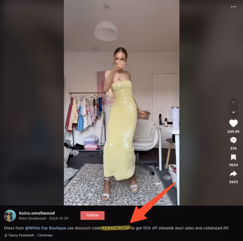 👉 Content dos and don’ts: Share a “snackable” roundup of rules and best practices, such as reminding influencers to add discount codes to their TikTok captions.