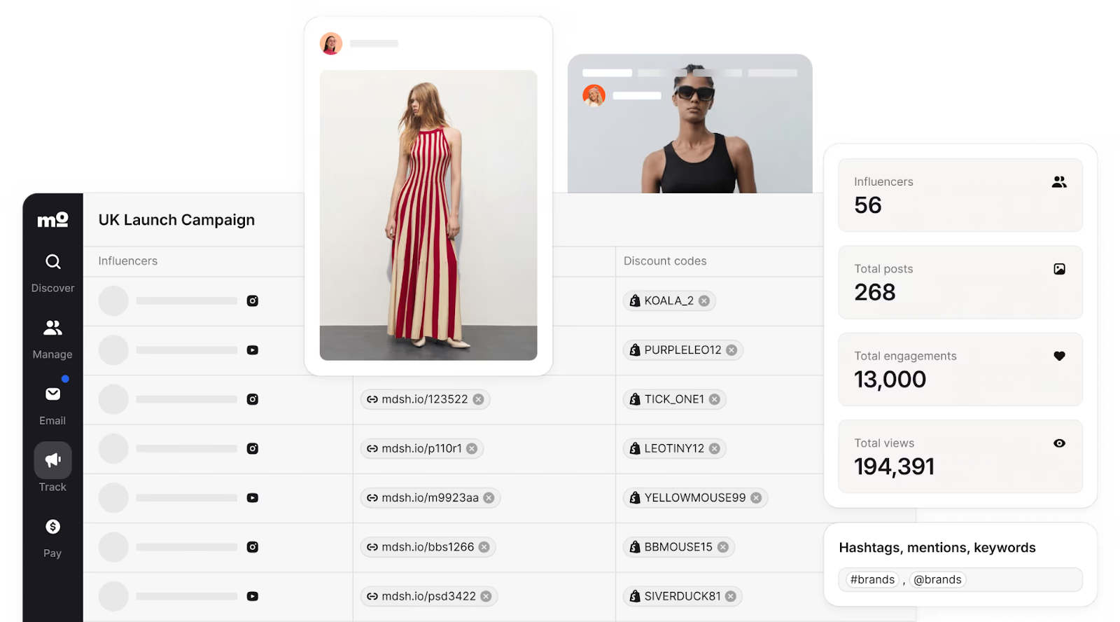In Modash, you can see a campaign’s overview in a jiffy: views, EMV, sales, clicks, cost, it’s all there.