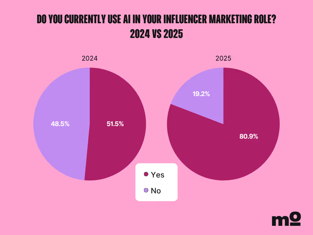 In 2024, a little over half of the marketers we surveyed were using AI. That number jumped to 80.9% in 2025.