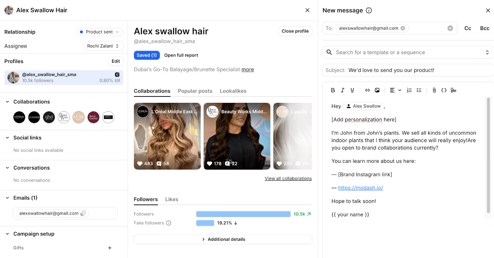 That’s why a creator CRM (like the one we have at Modash) is essential to find this depth in your long-term influencer relationships. You can keep track of every partnership in one tab – content history, performance data, notes, and more.