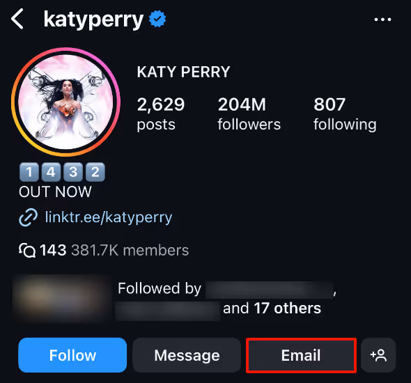 For instance, on Instagram, you can find an influencer’s email address by visiting their profile on the mobile app: