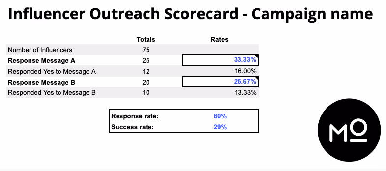 Don’t have a spreadsheet for that yet? We got you – copy this free Google Sheet to help you keep track of the number of influencers you’ve contacted as well as which email variation you’ve sent them.