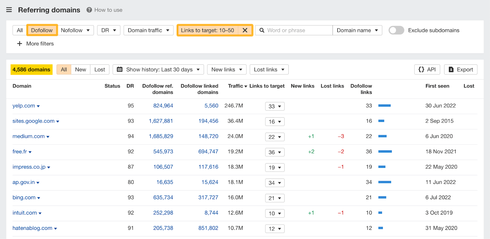 Eine Möglichkeit besteht darin, ein Backlink-Analyse-Tool wie Ahrefs zu nutzen, mit dem Sie sehen können, welche Websites am häufigsten auf die Seite Ihres Mitbewerbers verlinken.