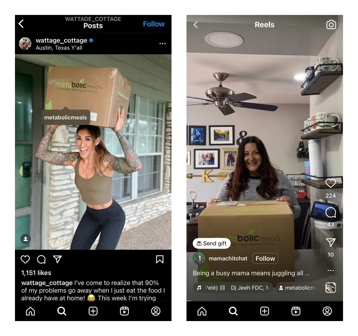 Die Zusammenarbeit mit Nischen-Creatoren ist eine gute Möglichkeit, Ihre Influencer-Marketing-Aktivitäten zu skalieren. Wenn Sie zum Beispiel gesunde, nährstoffreiche Mahlzeiten bis an die Haustür liefern, sind Fitness-Influencer Ihre naheliegende Wahl für Micro-Influencer. Aber auch beschäftigte Mütter, die vielleicht keine Zeit haben, etwas Gesundes und Leckeres für ihre Kinder zuzubereiten. Metabolic Meals hat das erkannt und begann, mit Mikro-Influencern beider Arten zusammenzuarbeiten – von Athletinnen wie Allison bis hin zu Müttern wie Sharon.