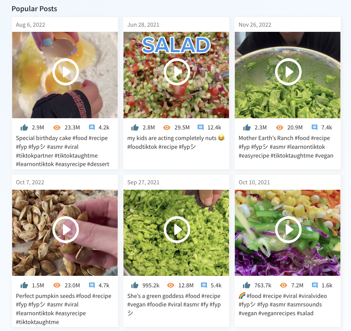 Einen Einblick in die beliebtesten Inhalte eines Influencers zu bekommen, hilft dir zu verstehen, was bei ihrem Publikum ankommt und was sie mehr sehen wollen.