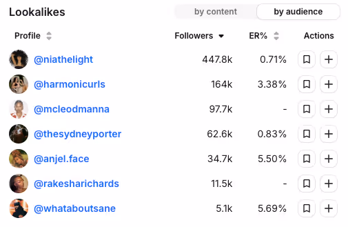 🤓Pro tip: When you’ve tracked down a potential partner, use our influencer lookalike tool to find similar affiliates based on their followers or the content they share. It’s a quick and easy way to turn one or two positive results into a bunch of relevant affiliates you can reach out to.