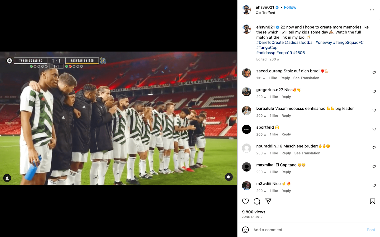Adidas no necesita presentación. En 2015 se dieron cuenta de que asociarse solo con macroinfluencers no encajaba con su misión de ser una marca receptiva. Por eso crearon una red de 1 400 jóvenes creadores de contenido de fútbol, denominada Tango Squad.