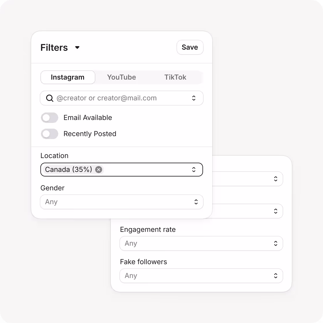 - Find creators using targeted filters so you aren’t wasting your time checking creator profiles that don’t match your non-negotiable criteria.