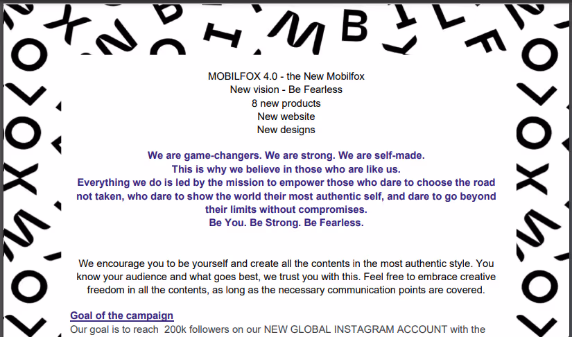 While this is a longer brief, the formatting makes it easily skimmable for busy creators. Mobilfox clearly outlines their goals, and shows how the creator can help them get there.