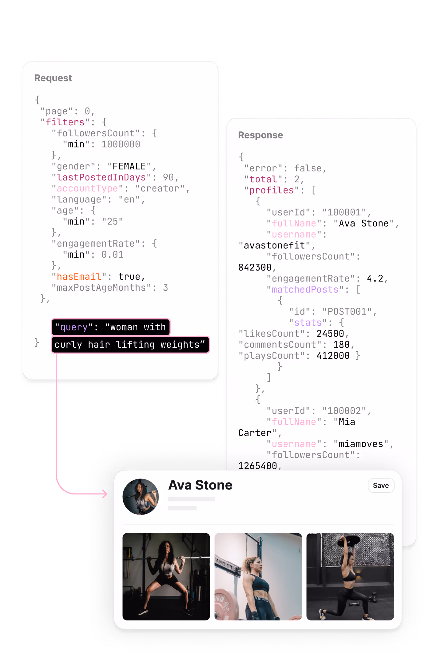 Discovery API provides analyzed, aggregated data perfect for programmatic vetting, audience demographics, and lookalike searches. The