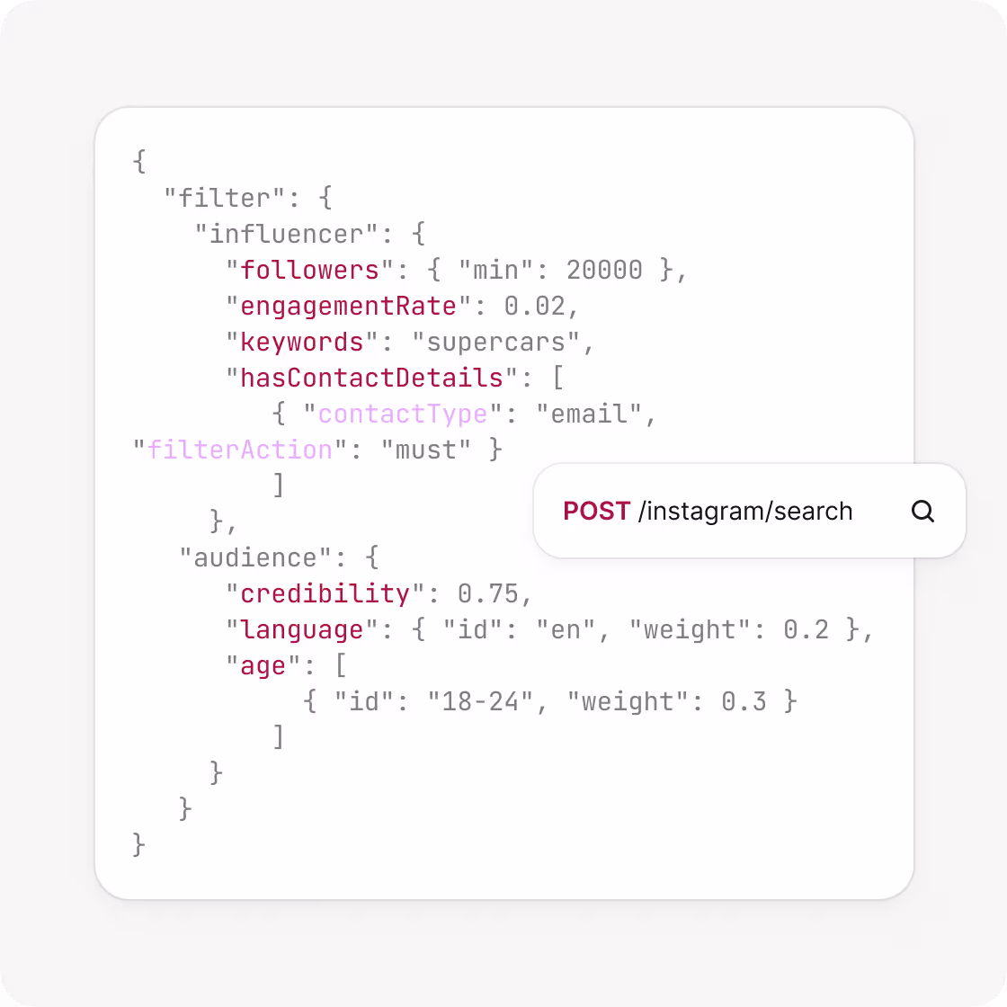 Use Modash API as the engine for your influencer platform. Offer your customers powerful influencer search with AI, analytics, and campaign management tools.