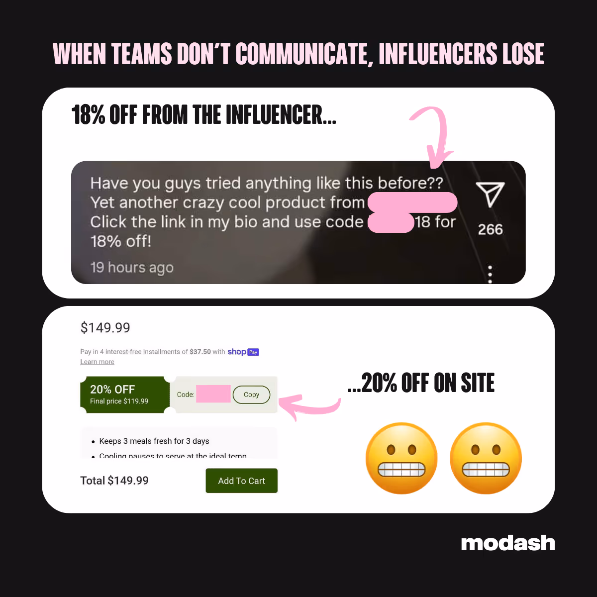 A discount code incentivizes customers to actually use the creator’s code – even if they bounce off of the creator’s post and search for your brand via Google.