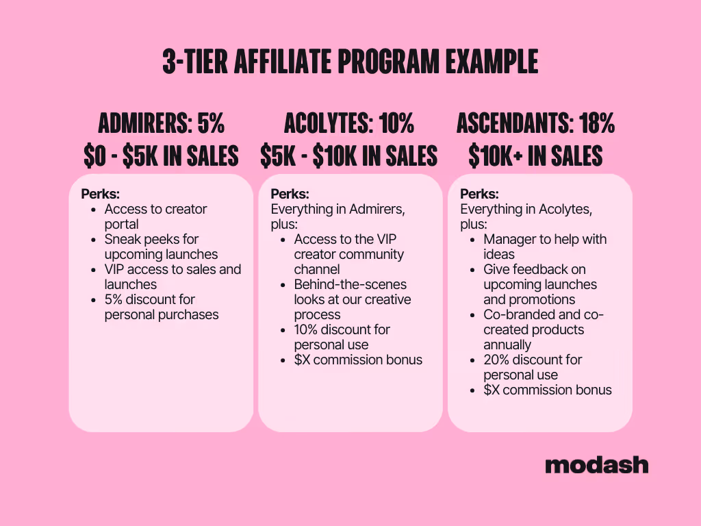 You want your creator to want to work towards something, while keeping your initial commission attractive. You also want your creators who reach the top tier to feel like they’ve earned something, and that they’re rewarded for their work.
