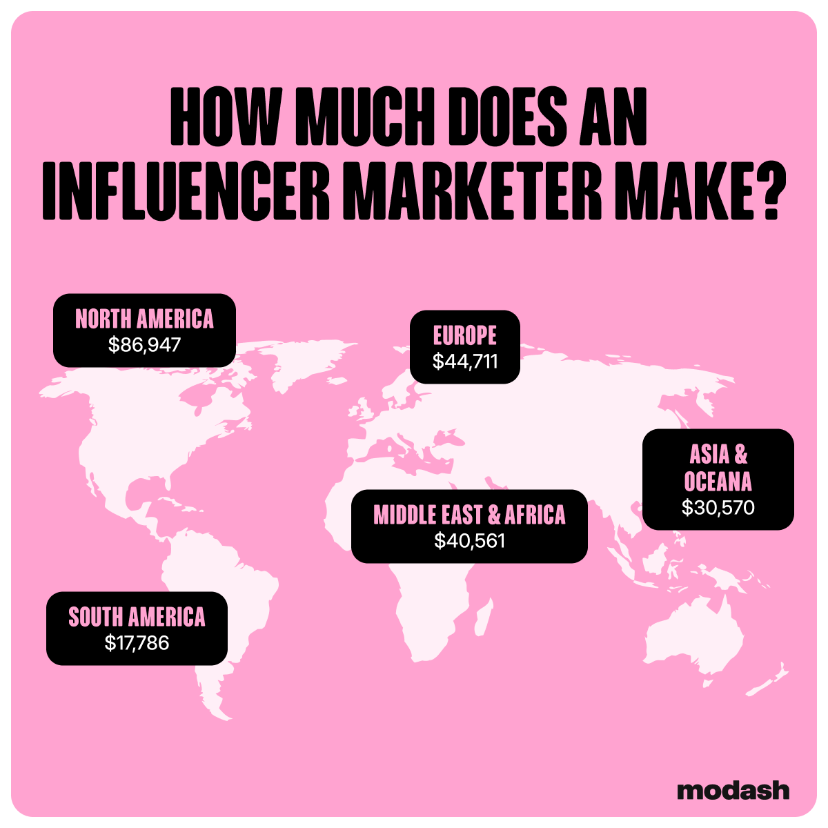 There’s an easy answer. Of our nearly 400 in-house influencer marketers, global average salaries work out to $49,981.