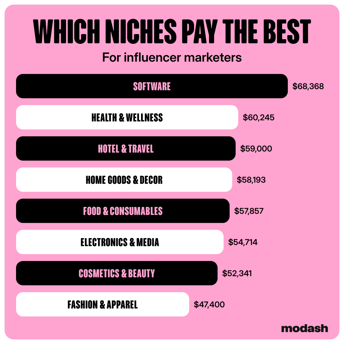 Fashion and apparel, despite being the most popular niche, had the lowest average salary – it was the only niche that fell below the global average salary.