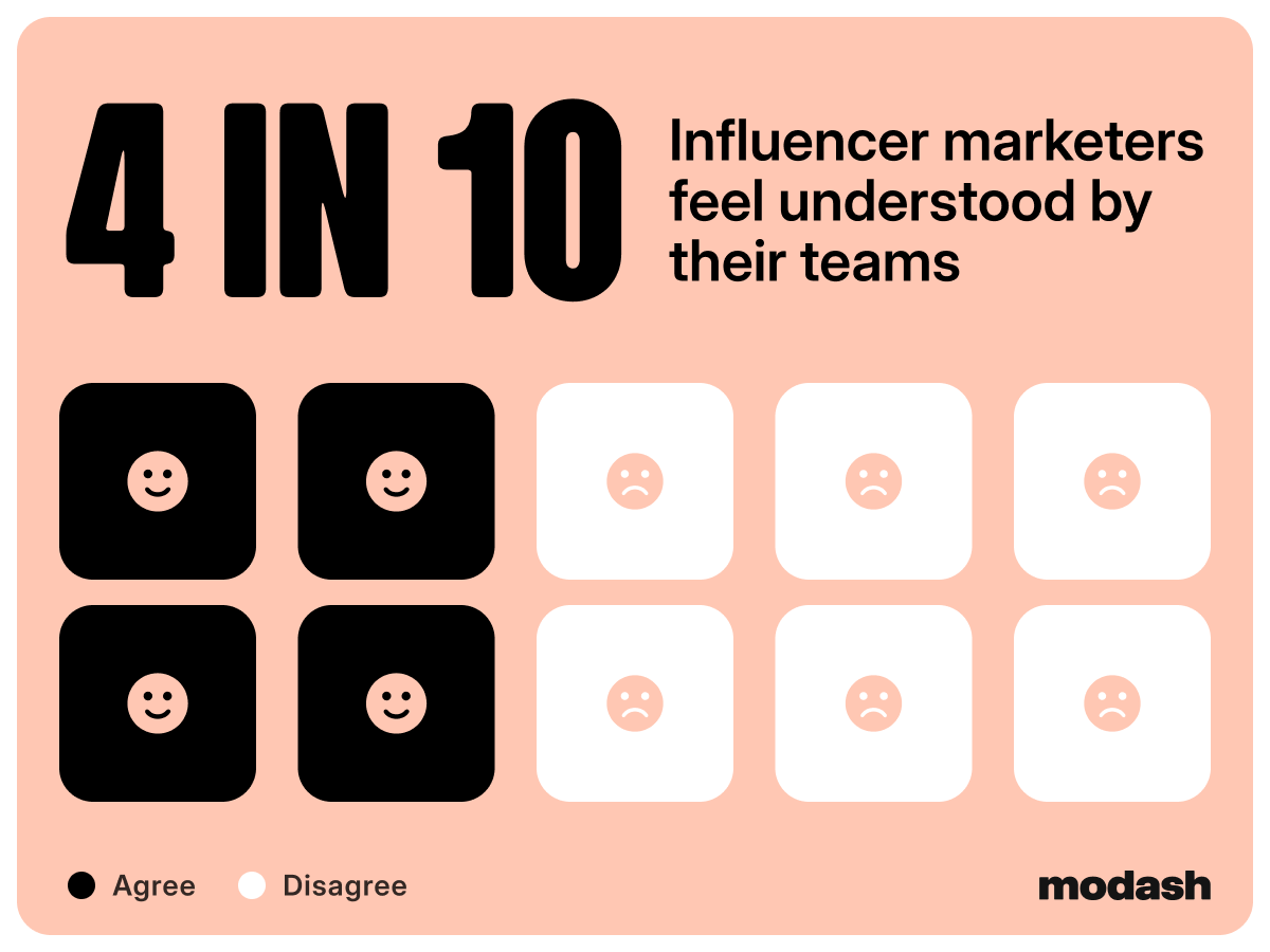 And it’s clear from these results that when a team isn’t invested in understanding and championing influencer marketing, those marketers report feeling less content in their roles within that team.