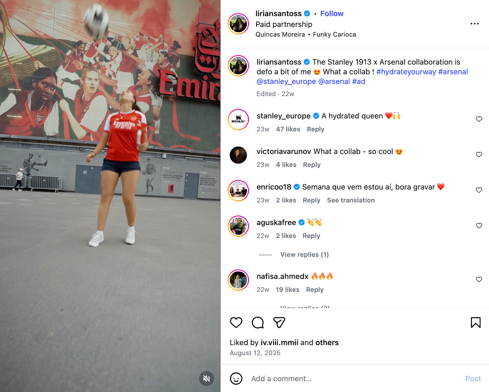 • Attending Arsenal games and events with other Stanley influencers