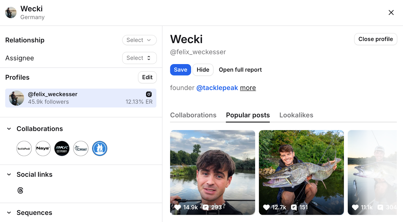 Again, Modash makes this easy by surfacing an influencer’s previous collaborations and most popular posts, so Valeriia can quickly get a feel for whether they’d be a strong brand fit.