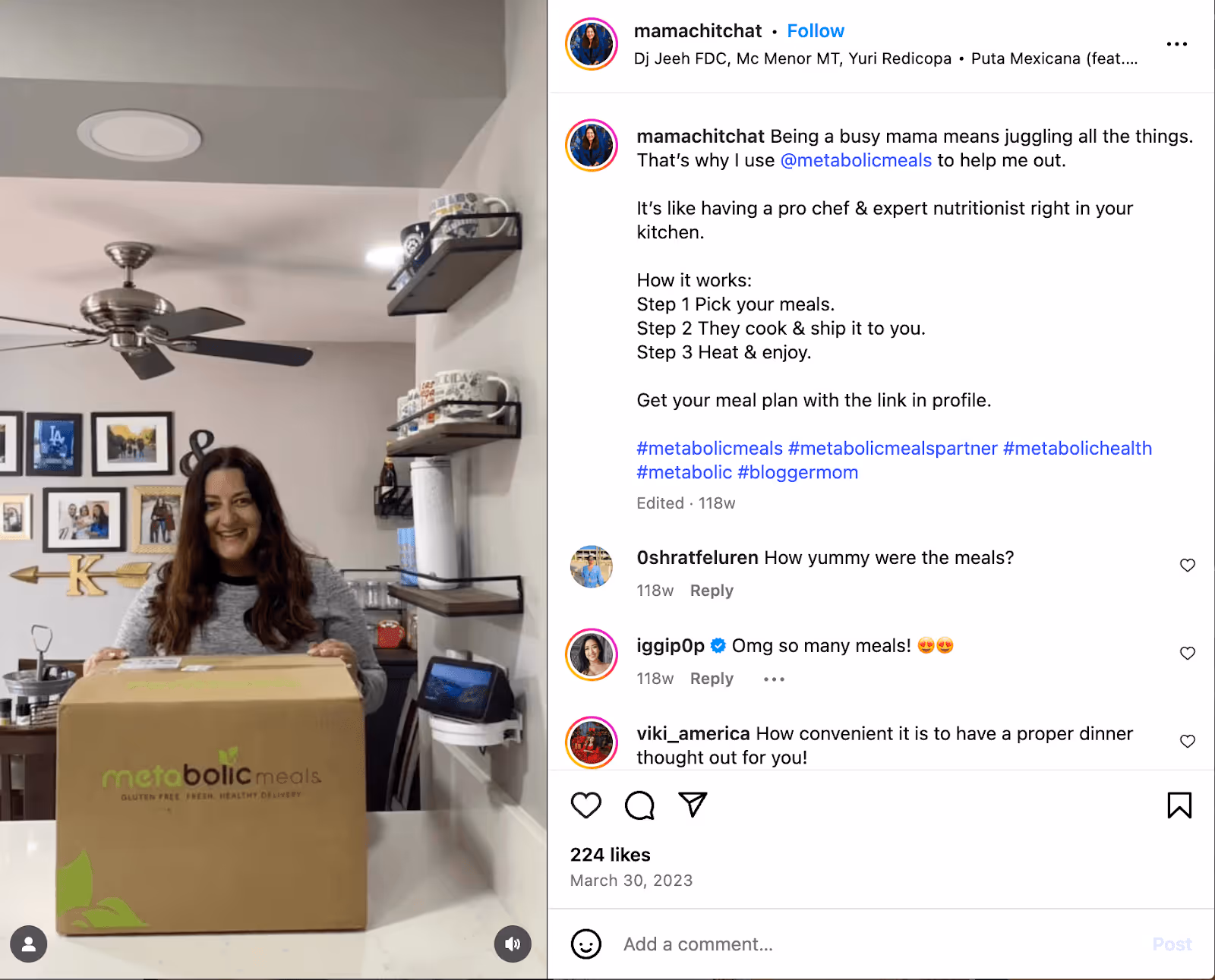For example, when you think of Metabolic Meals – a food delivery service – you would assume their first choice is to partner with health influencers. And they do, but they also collaborate with mom influencers to show a different use case of their product to their target customers.