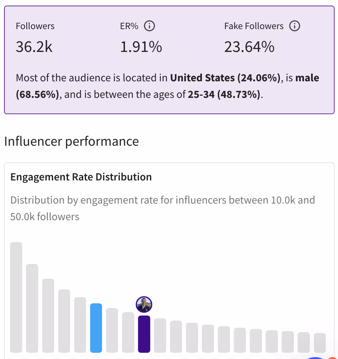 One of NeoReach's key features is its fraud detection system. By analyzing engagement patterns, follower growth, and other critical metrics, it efficiently spots potentially fake or fraudulent followers, ensuring you work with influencers who have authentic audiences.