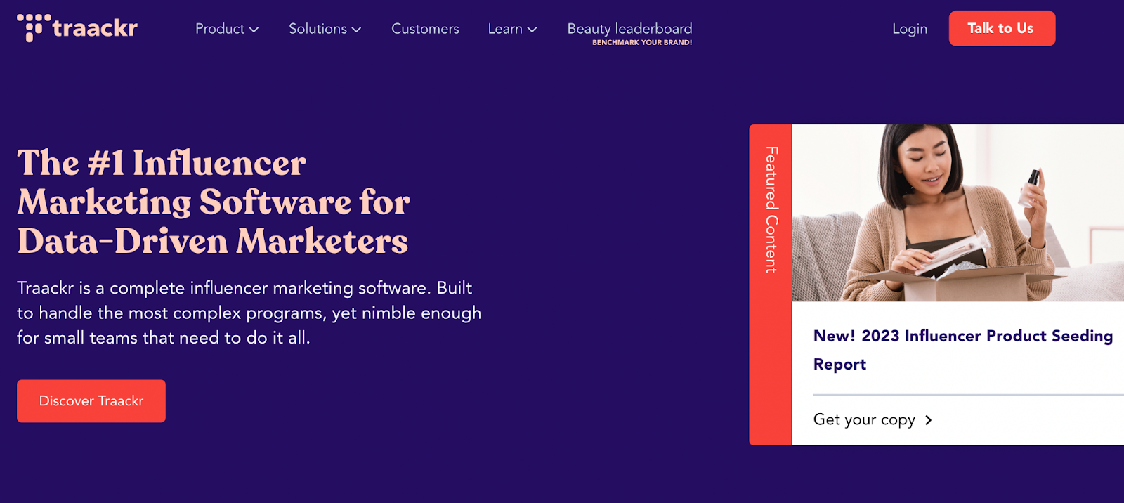 초기 인플루언서 마케팅 플랫폼 중 하나인 Traackr는 로레알, Beekman과 같은 대형 뷰티 브랜드가 선호하는 솔루션입니다.