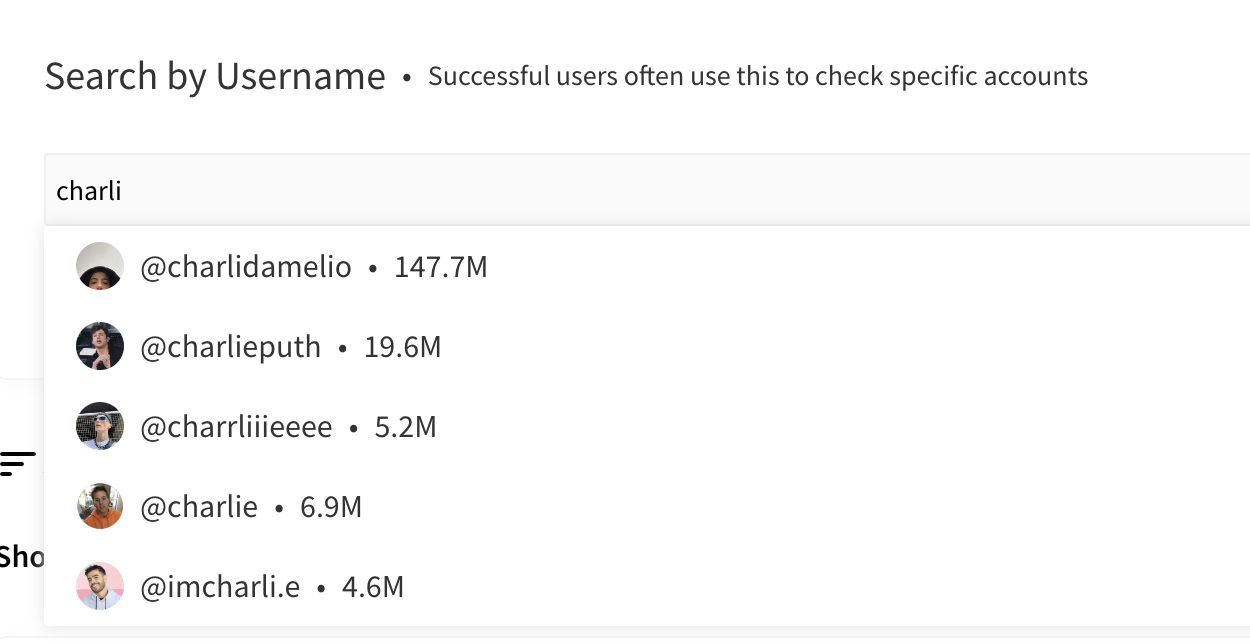 인플루언서의 사용자 이름을 알고 있다면 Discovery 섹션에서 검색해 목록에 추가하세요.