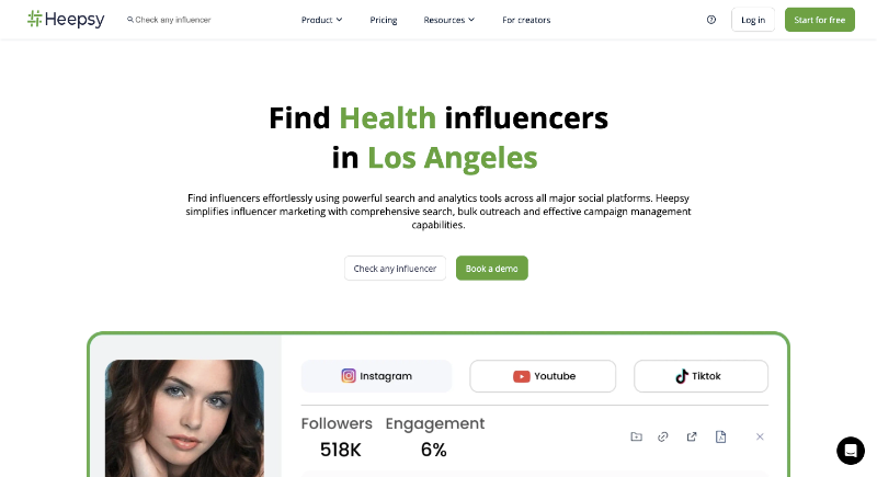 💵 Prijs: Heepsy biedt beperkte influencer search- en analysetools gratis aan. Betaalde plannen variëren van $89 – $369+ per maand.