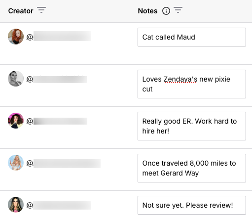Modashâs dedicated influencer marketing inbox lets you save templates, use variables, and find all the context you need to send laser-targeted outreach â all within a single tab. Create notes about individual influencers and view them in your inbox when youâre crafting your initial outreach message.
