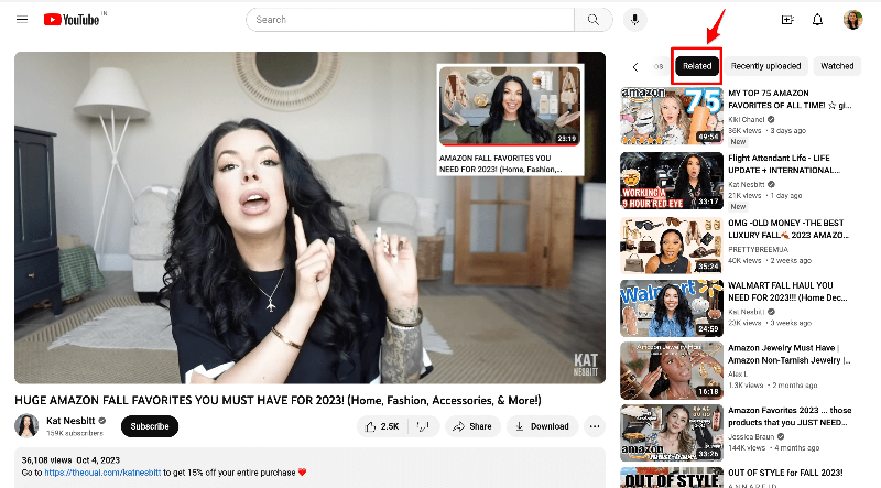 Algorytm YouTube świetnie to wychwytuje i poleca powiązane filmy innych influencerów Amazon.