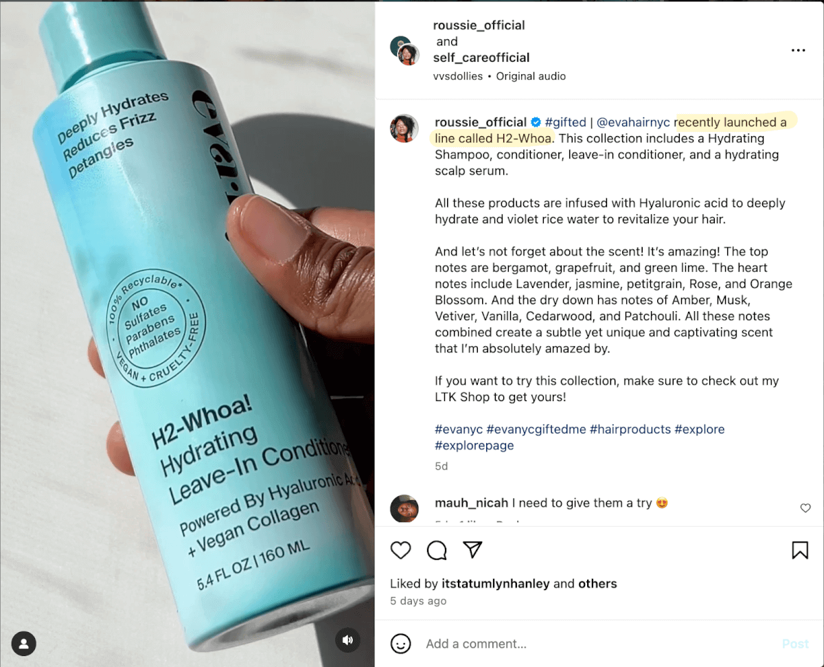 Embora esta abordagem seja usada como parte da estratégia diária da marca, foi intensificada para o lançamento de um novo produto capilar, o H2-Whoa, gerando mais conteúdos de influencers num curto espaço de tempo.