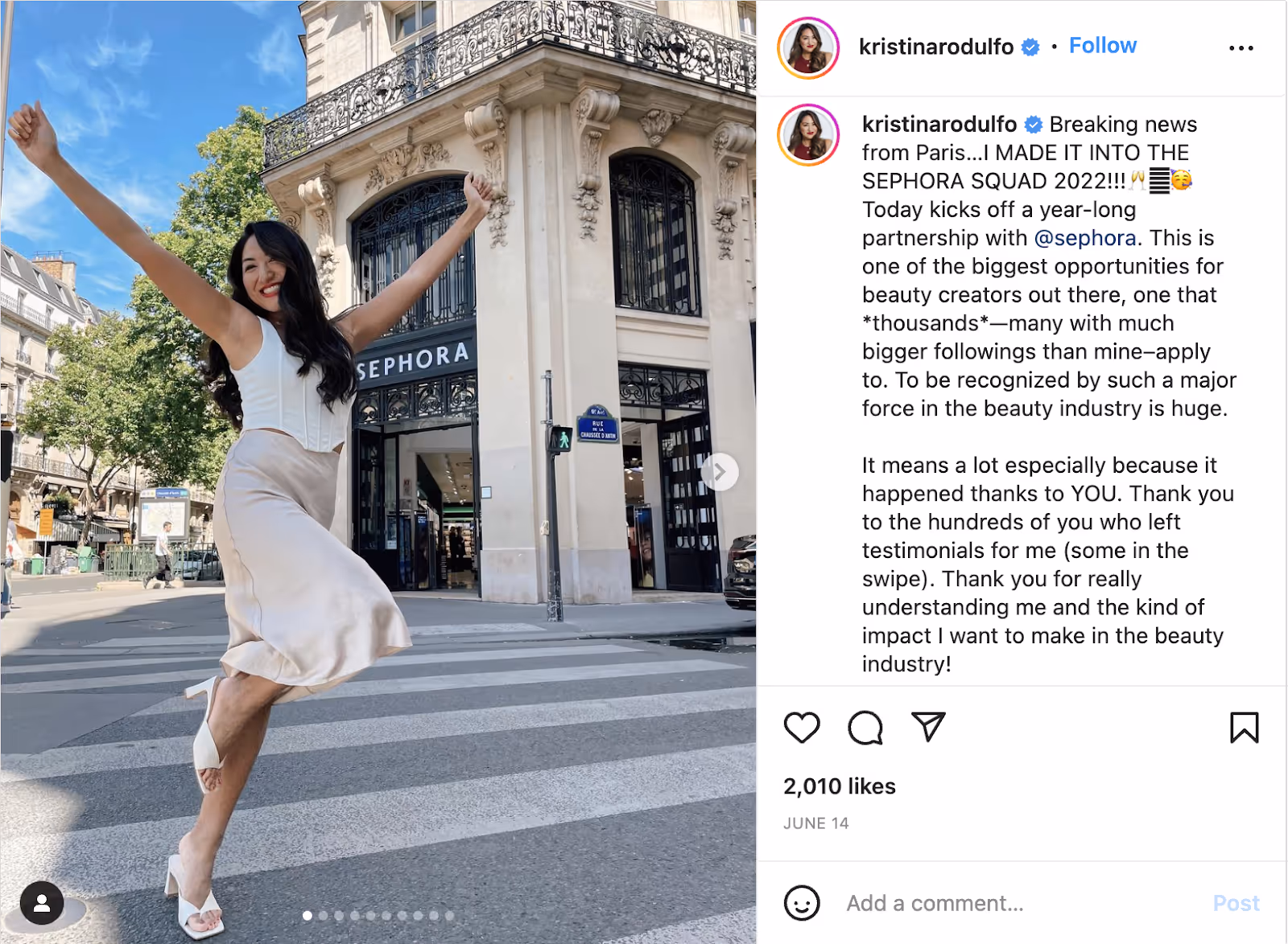 Veja este post de Kristina Rodulfo, onde anunciou a sua colaboração de um ano com a Sephora.